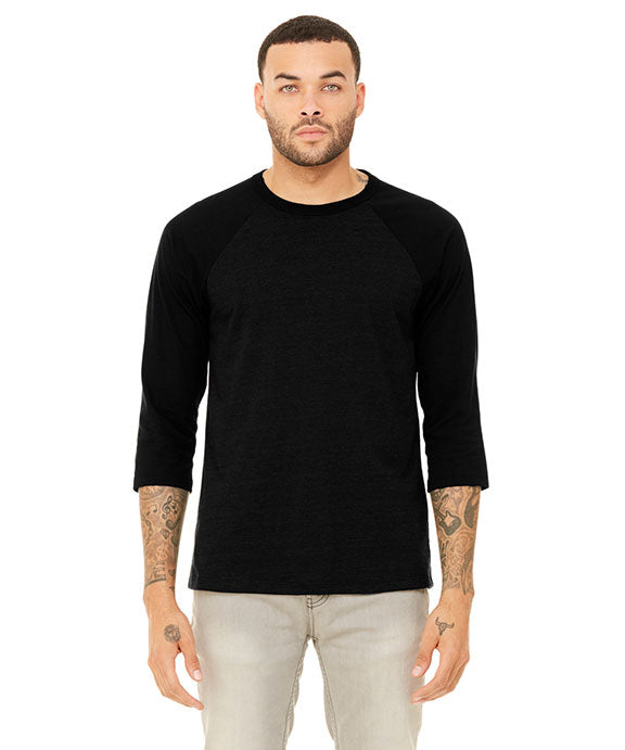 3200 - Bella + Canvas Unisex 3/4-Sleeve Baseball T-Shirt | Black Heather/Black