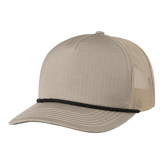 BA680 - Big Accessories Ripstop Foam Trucker Hat | Khaki/Black Rope