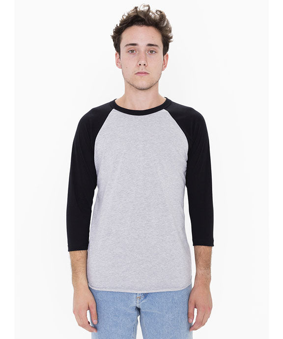 BB453W - American Apparel Unisex Poly-Cotton 3/4 Sleeve Raglan T-Shirt | Heather Grey/Black