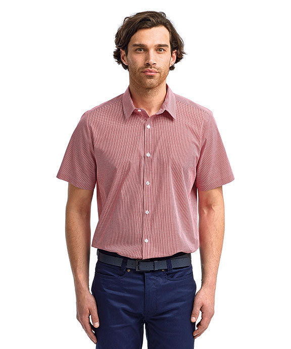 RP221 - Artisan Collection by Reprime Mens Microcheck Gingham Short-Sleeve Cotton Shirt | Red/White
